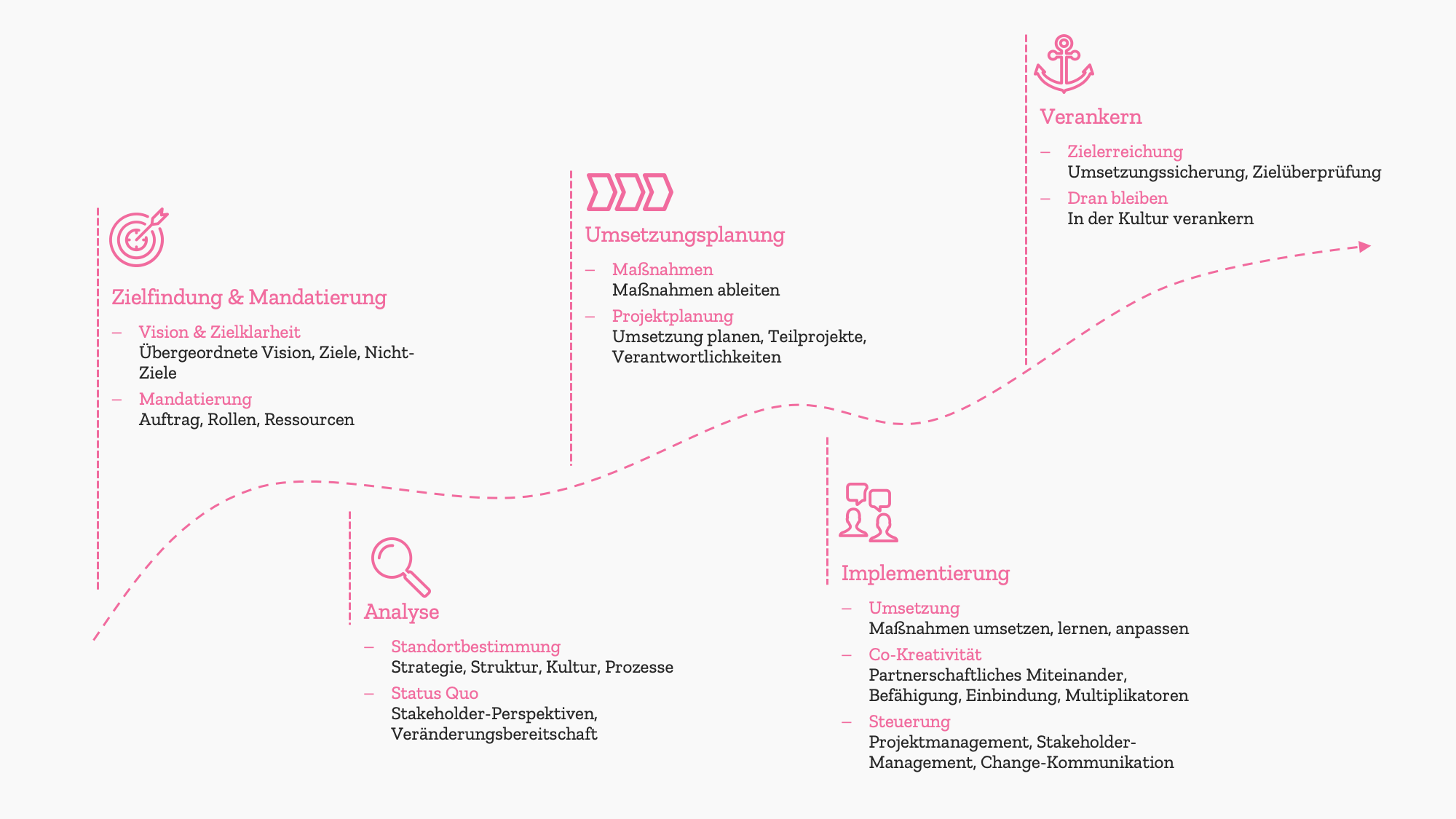 Stattdessen empfehlen wir Ihnen eine co-kreative Organisationsentwicklung, die top-down initiiert und bottum-up gestaltet wird.